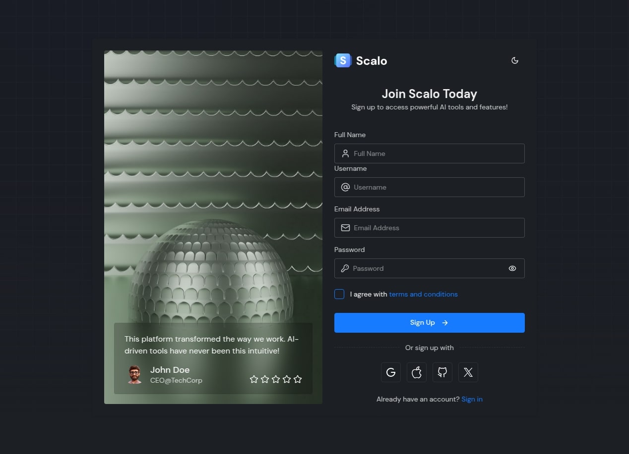Supercharge Scalo with a modern, smart admin dashboard. Powerful insights, real-time analytics, automation, and seamless management tools.