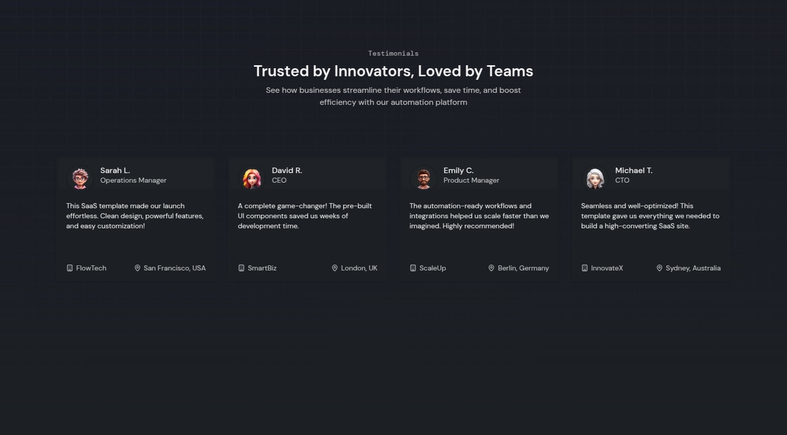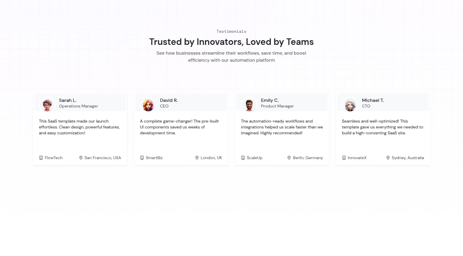 All the required pages for a startup website are already there. Instead of spending weeks to decide about page layouts, spacing, sizes and details, ship your idea in 30 minutes and start getting users.